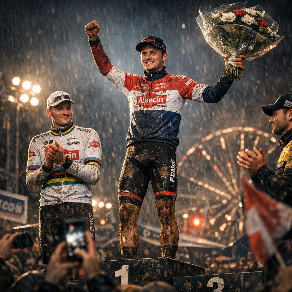 A Maldegem, nel cuore delle Fiandre sabbiose, l’Exact Cross vive una tappa che certifica una certezza: l’Alpecin-Premier Tech non smette di comandare, anche quando il nome sul gradino più alto del podio non è quello di Mathieu van der Poel. Stavolta tocca a Niels Vandeputte prendersi la scena, vincendo la penultima prova della serie dopo una gara dura, nervosa e decisa dagli errori prima ancora che dalla forza pura.