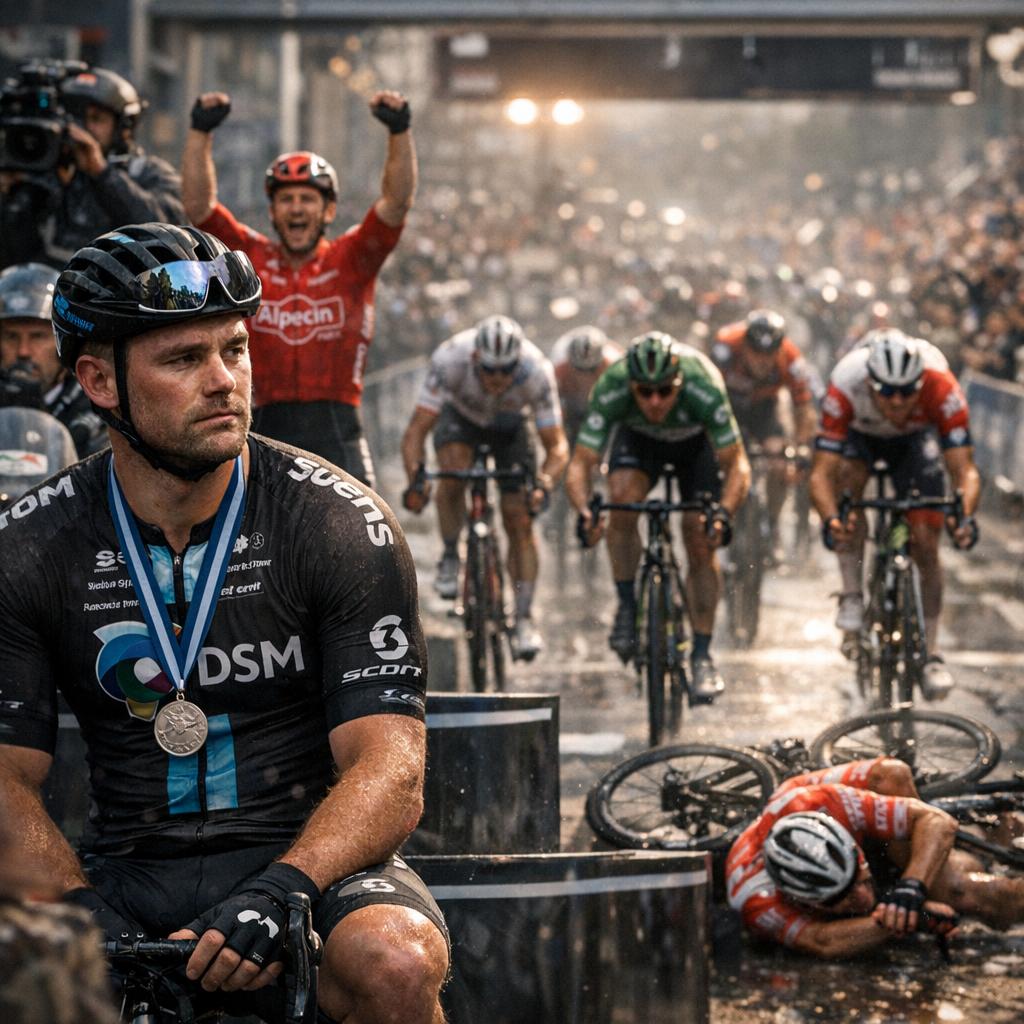 Nel circuito finale la tensione è salita. Jonas Abrahamsen ha provato ad anticipare a sette chilometri dall’arrivo. Filippo Ganna lo ha ripreso in extremis, mettendo sul piatto potenza e posizione in sella da cronoman per riportare sotto il tentativo. Poi, a 2,6 chilometri dal traguardo, la svolta pericolosa: caduta in curva, uomini a terra, tra cui Jasper Philipsen. Welsford ha evitato il contatto per centimetri. “Quando quattro corridori si buttano nello stesso metro di strada, può succedere”, ha detto. È la legge delle volate: si entra forte, si frena tardi, si rischia.